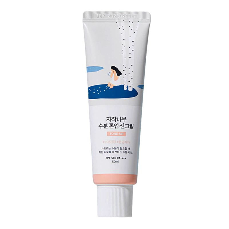 Солнцезащитный крем Round Lab Birch Juice Moisturizing Tone-Up Sunscreen SPF50+ PA++++ подстраивается под тон кожи и защищает от ультрафиолета, предотвращая фотостарение, появление пигментации и солнечных ожогов.